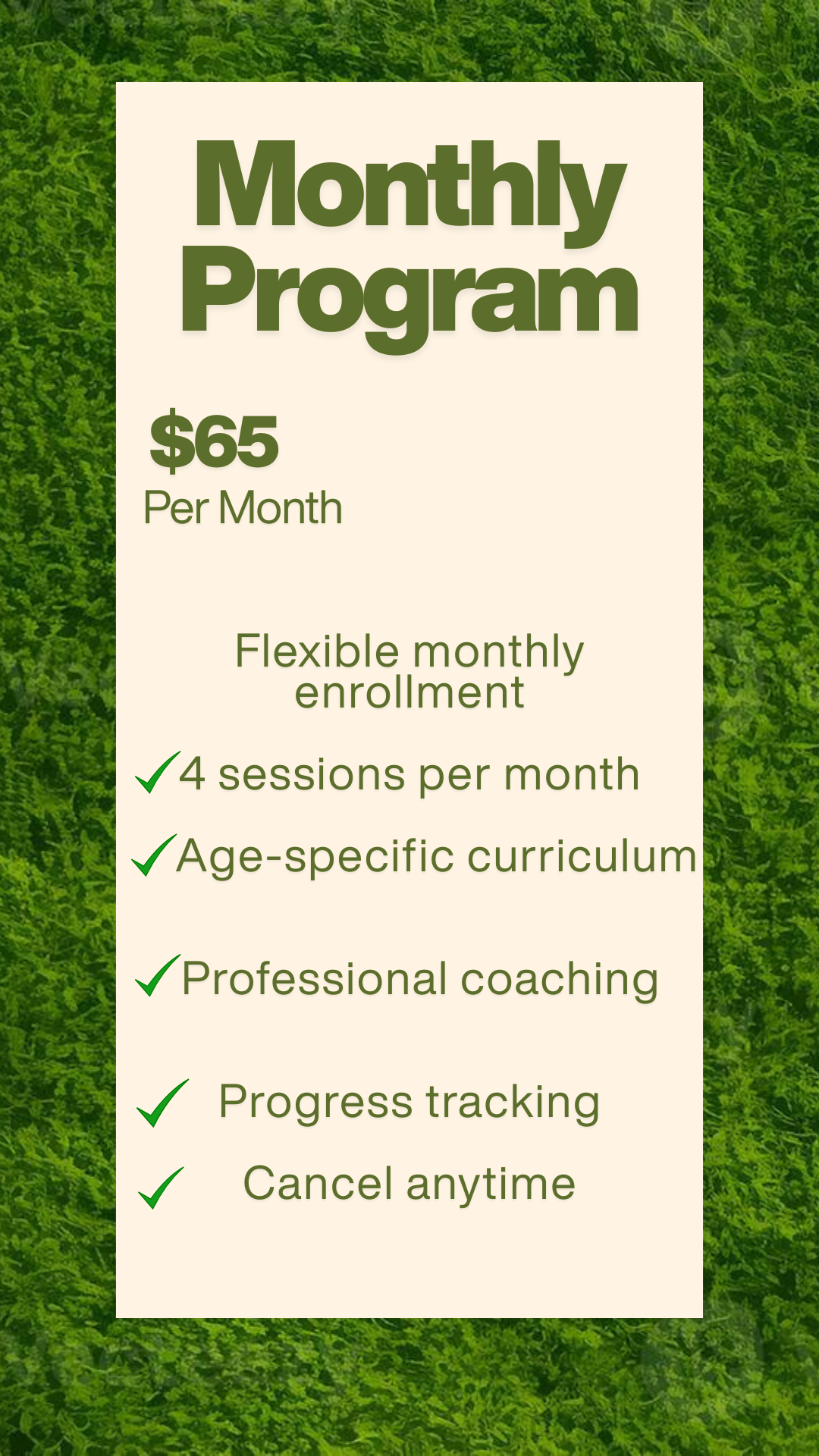 Just a one-time $20 registration fee. All equipment, coaching, and facilities are included in your program fee. Optional uniforms are available for purchase.