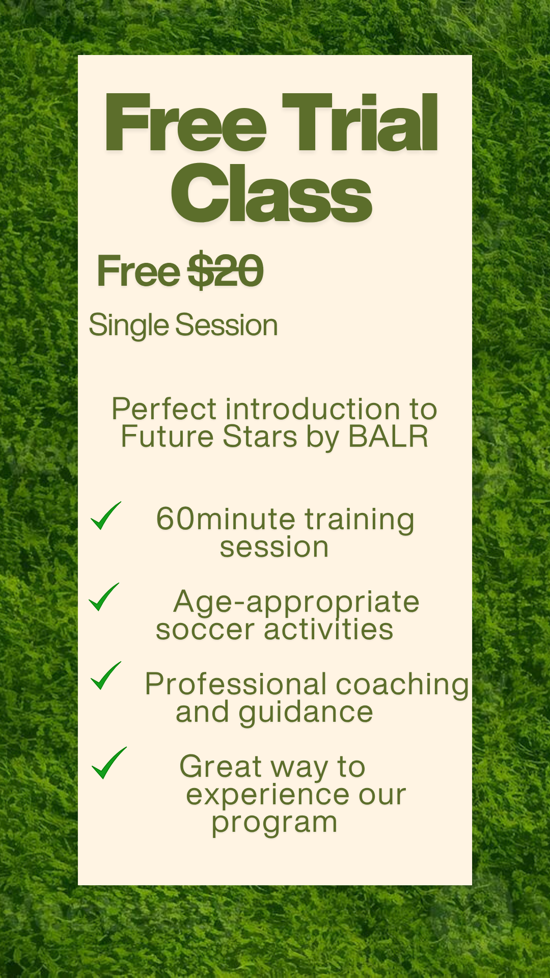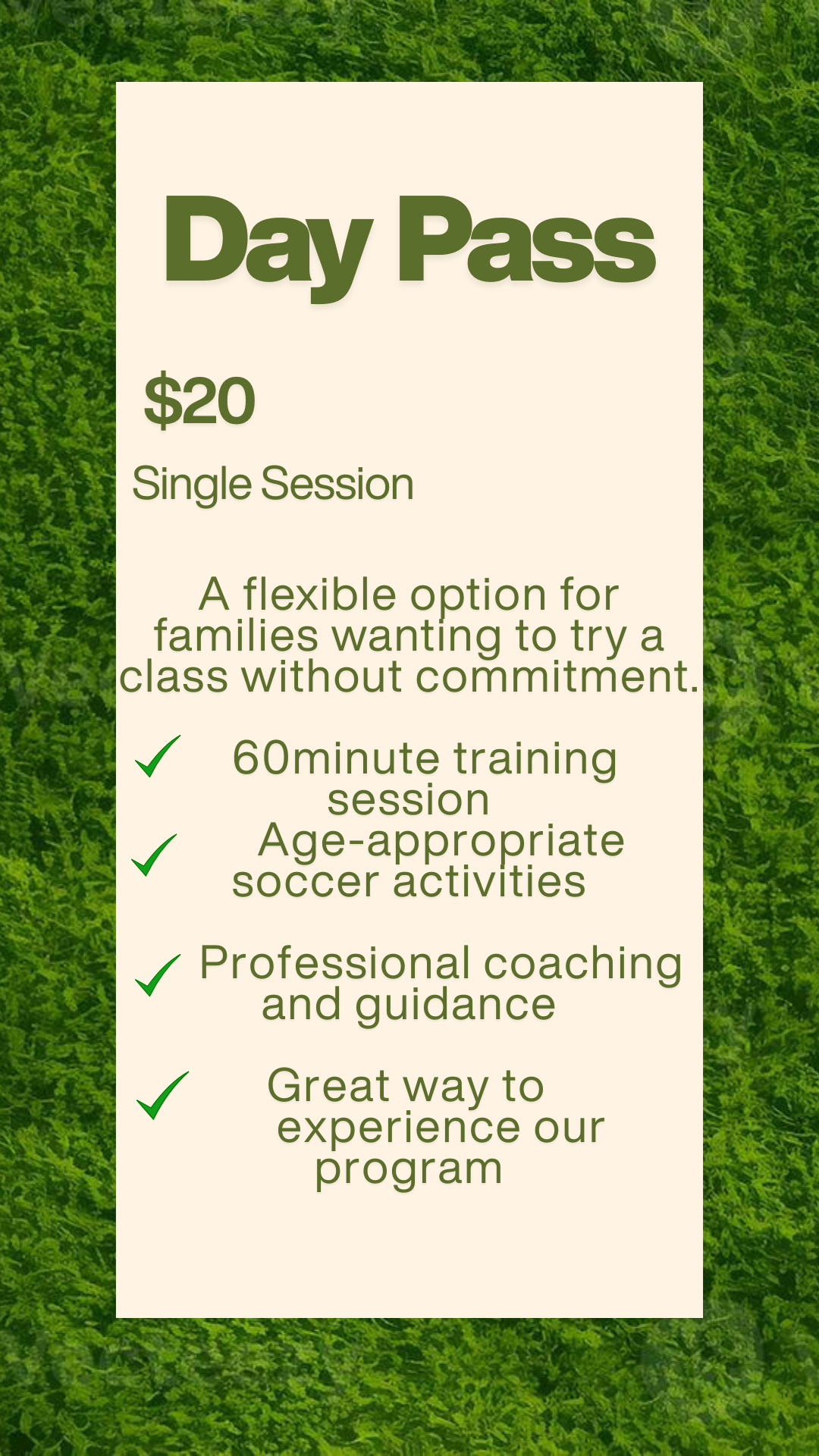Comfortable athletic clothing and sneakers. We provide all soccer equipment. Bring a water bottle and dress for the weather if outdoors.